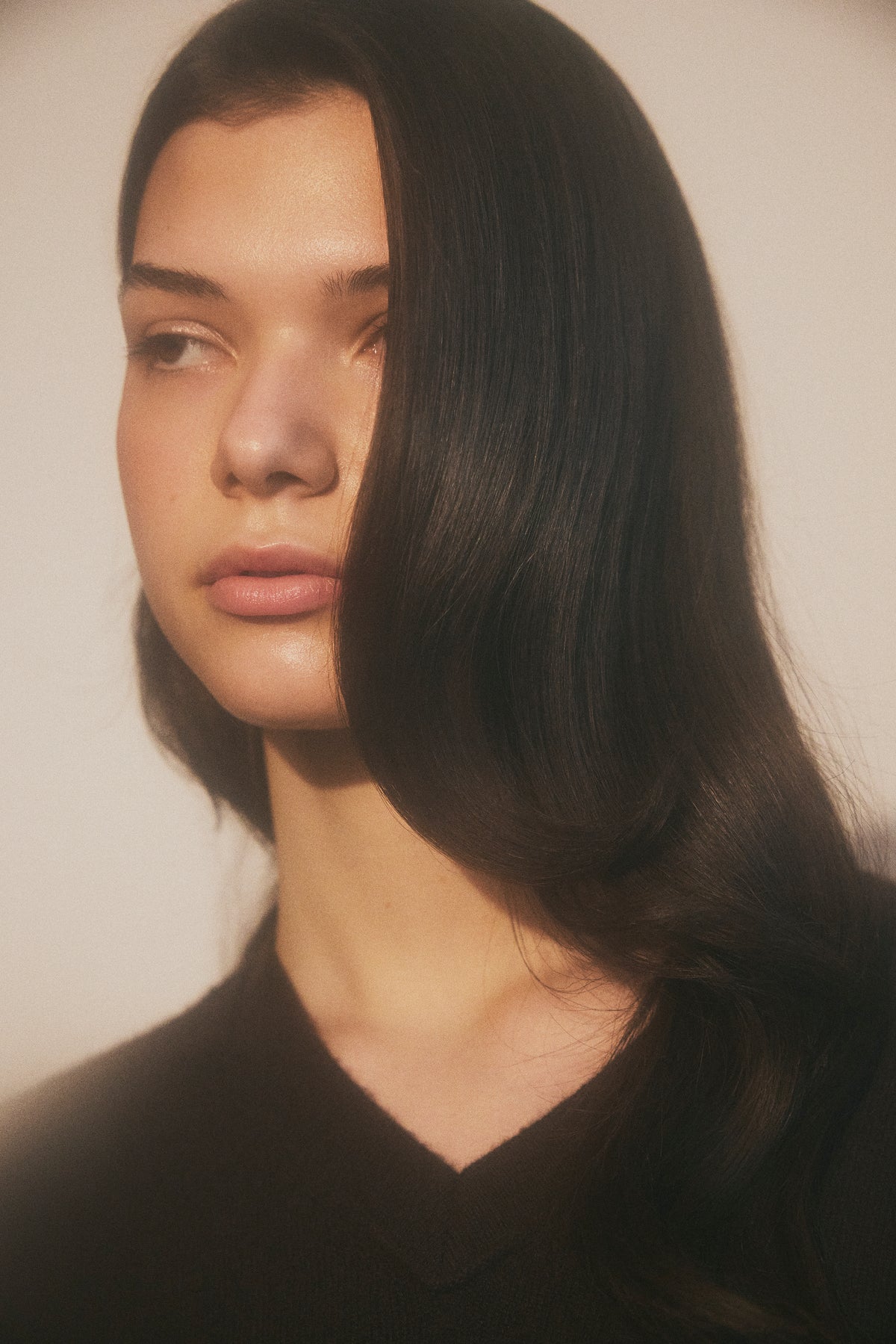Hair Oil No.2 smooths the hair surface instantly, refining the outer layer of the fibre for a visibly more polished result. The effect is immediate — controlled, sleek, and effortless.